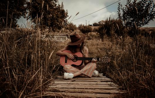 Photo by Roudy Salameh: https://www.pexels.com/photo/woman-holding-guitar-sitting-on-dock-2692080/ .